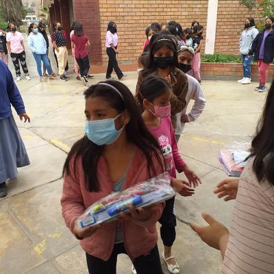 En esta ocasión, recibimos una donación de útiles escolares proveniente de la parroquia de Guriezo (España) destinada a las niñas residentes del Hogar de la Misericordia de Puente Piedra. Estos materiales fueron seleccionados y preparados por los estudiantes de nuestra promoción 2022, y el sábado, tres de ellos, en representación de todo el grupo, los entregaron personalmente a las niñas.