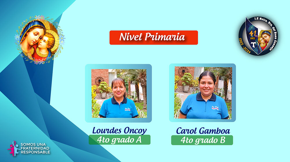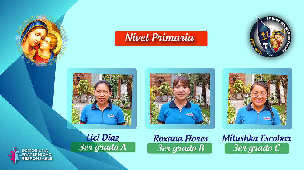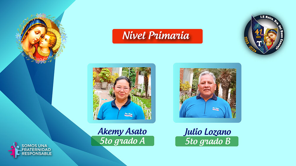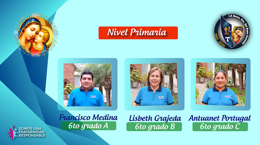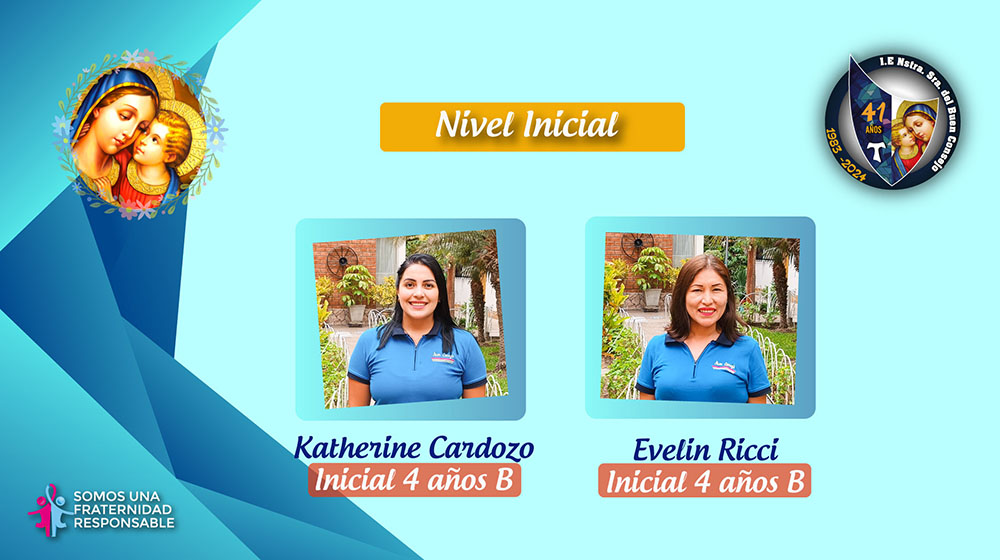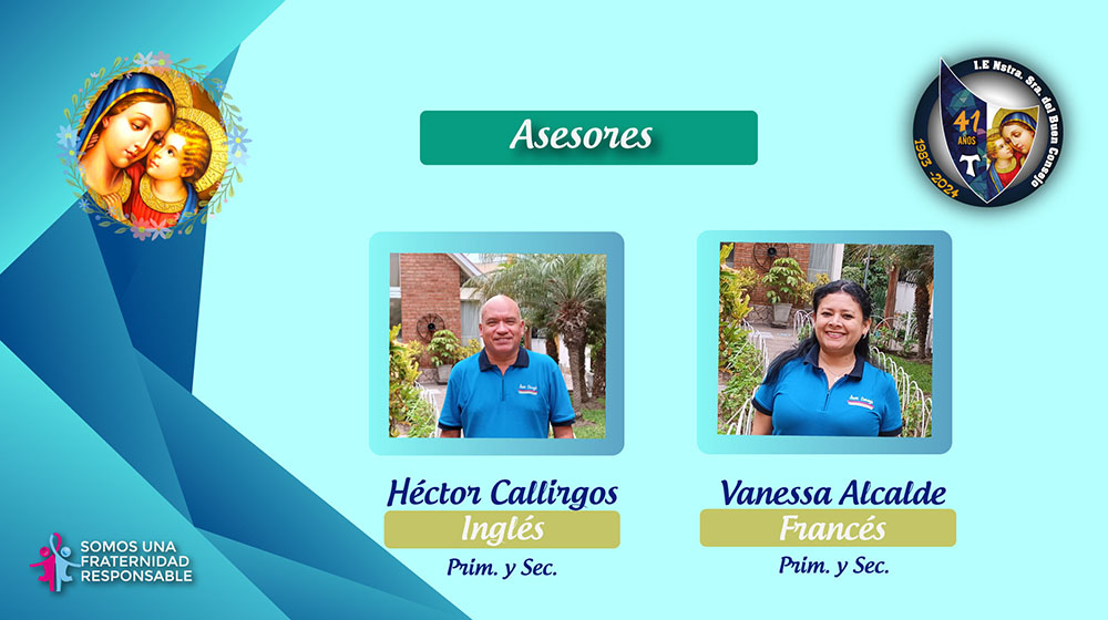 PERSONAL DIRECTIVODirectora GeneralSor Juana Jorge GarcíaSub Directora AdministrativaSor Emilia Santos SantosEquipo Directivo Item de carrusel 01Directora GeneralSor Juana Jorge GarcíaItem de carrusel 02Sor Emilia Santos SantosSub Directora AdministrativaItem de carrusel 04Lic. Rosa María Torres TorresJefe de Norma y ConvivenciaCoordinadora de TutoríaItem de carrusel 03Juan Antonio Ruiz GutiérrezCoordinador de PastoralCoordinaciones Item de carrusel 03Mg. Lourdes Echavigorín VargasCoordinadora de 5to de primaria a 5to de secundariaItem de carrusel 04Mg. Mónica Dávila Paz Coordinadora de Inicial a 4to grado de PrimariaCoordinadora de ActividadesItem de carrusel 02Juan Antonio RuizCoordinador PastoralPersonal Educativo Inicial Primaria Secundaria Administrativo Asesorías